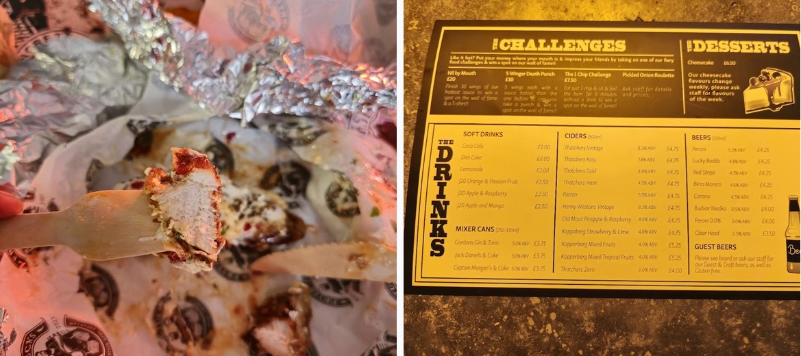 Really amazing wings and goujons. Atmosphere great and it is really nice round here to get friendly and helpful staff. Definitely coming back next week and may well move from hot to very hot 🔥 Brilliant place. Made a massive mistake last night walking past thinking it was a chippy. It is most definitely the best place to eat round here. Streets ahead of the local up your arse shite service steak house.